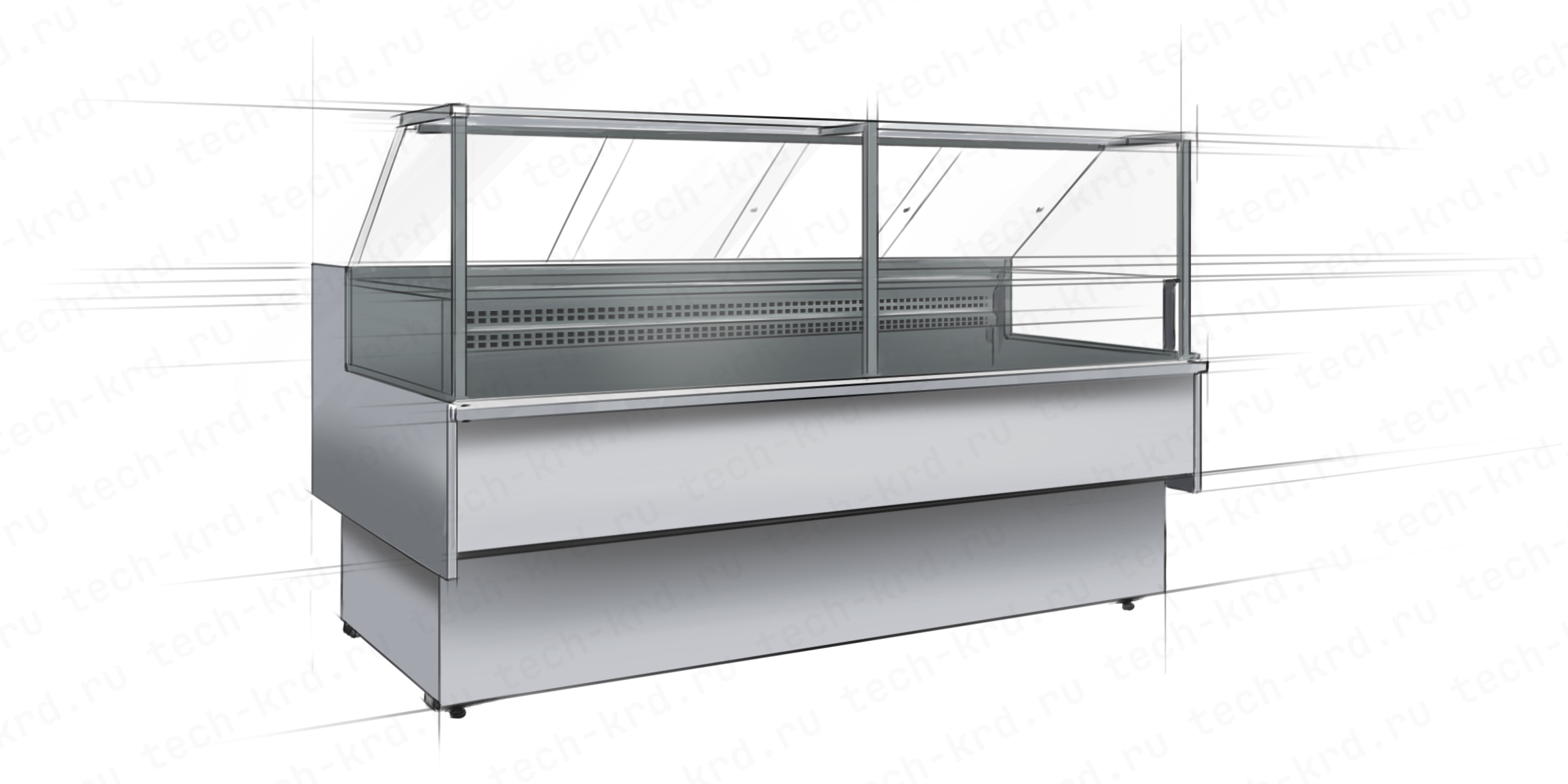- открытая со стеклянными боковинами витрина типа «рыба на льду»;