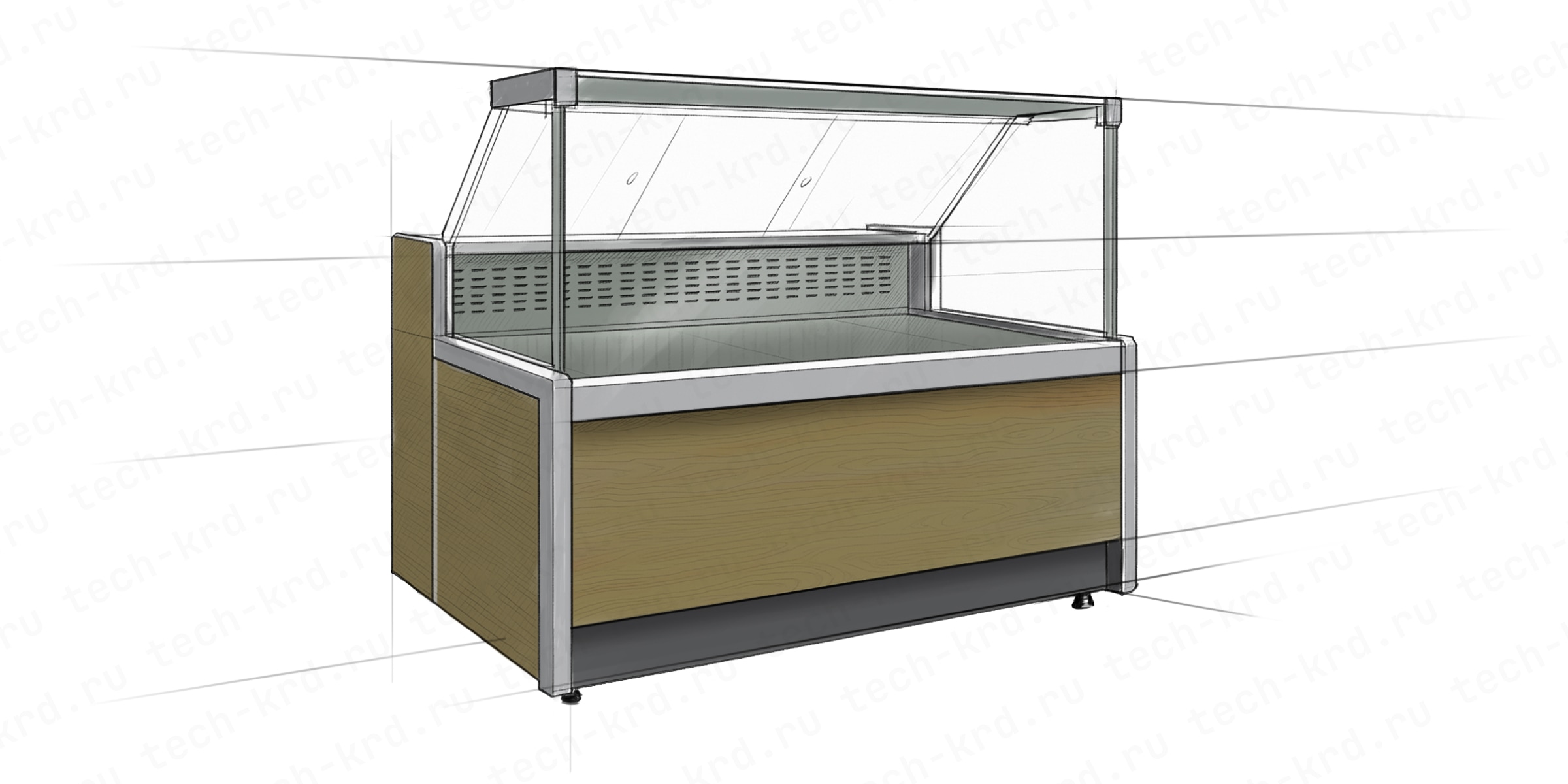 - открытая со стеклянными боковинами витрина (статическое охлаждение);