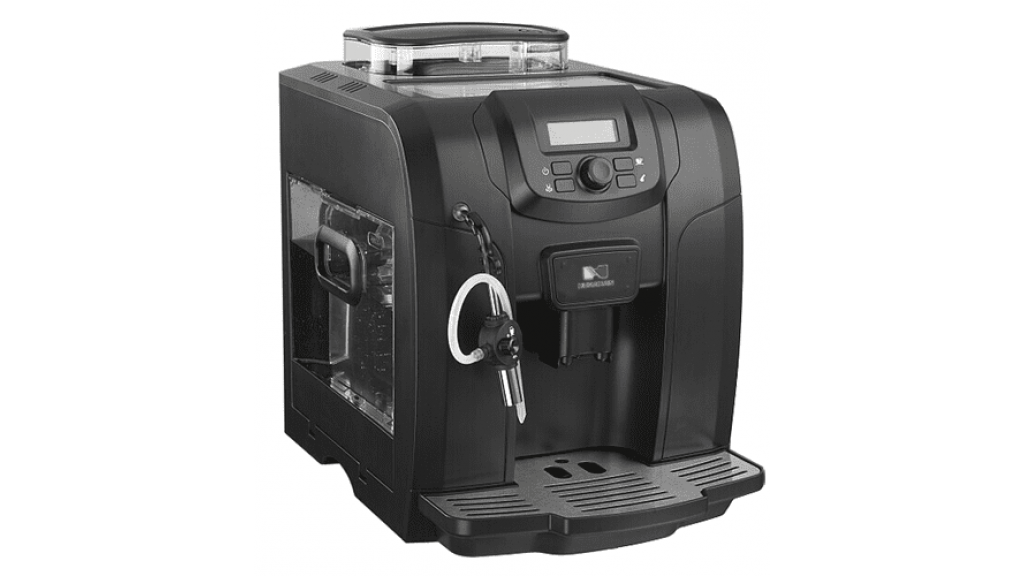 438 × 280 × 368 мм; 1,25 кВт; 220 В; 9,6 кг; объём бака 2 л; ёмкость контейнера для кофе: 300 г, настраиваемая температура кофе: 75…90 °C; 5 ступеней помола, встроенный капучинатор, подогрев чашек