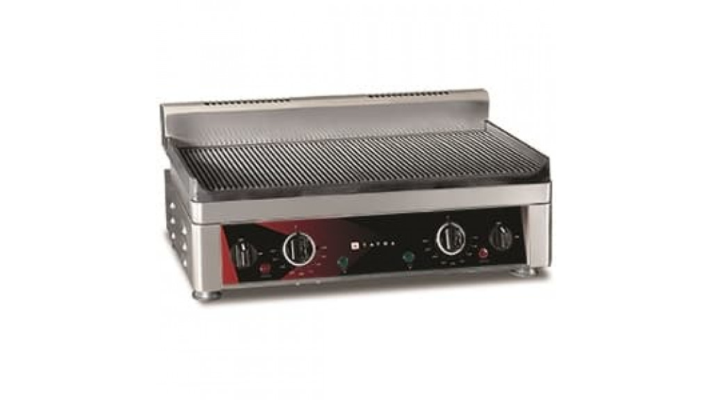 540 × 350 × 240 мм; 230 В; 2,2 кВт; рифленая поверхность (R), чугун, размер поверхности 520 × 240 мм; две зоны нагрева с независимым управлением, термостат: 50…300 °C; корпус нерж., ёмкость для сбора жира