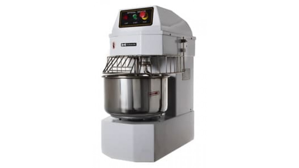 В конструкции предусмотрена несъемная дежа на 40 литров. Она выполнена из нержавеющей стали. Корпус аппарата изготовлен из окрашенного металла, что гарантирует его высокую прочность и долговечность. Высокая эффективность достигается за счет одновременного вращения насадки (200 об/мин) и чаши (20 об/мин). Тестомес оснащен защитной крышкой, является достаточно простыми в управлении и при этом, безопасным в работе.