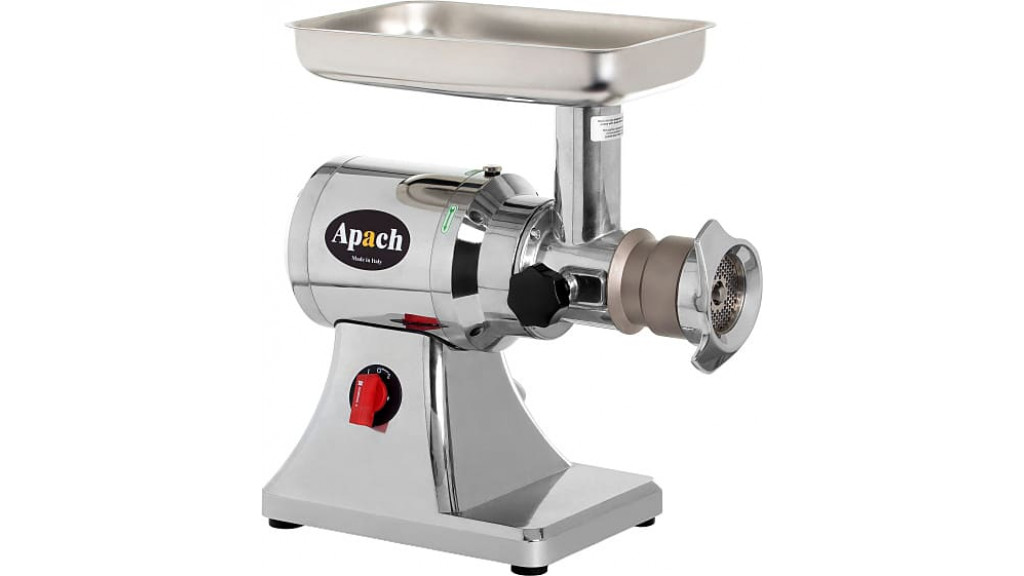Мясорубка Apach ATS12U предназначена для измельчения мяса в фарш и набивки колбас на предприятиях общественного питания и торговли. Модель оснащена вентилируемым асинхронным двигателем с защитой от перегрузок и толкателем из ABS пластика. Ножи, лоток и горловина выполнены из нержавеющей стали, мясорубочная часть - из пищевого чугуна.