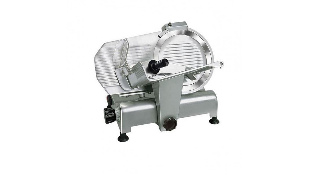 605 × 480 × 420 мм; диаметр ножа: 300 мм; рез: 245 × 220 мм; тефлонированный нож; полуавтоматический слайсер для нарезки мяса, сыра, колбасных изделий и других продуктов питания; толщина нарезки: 0 - 15 мм.