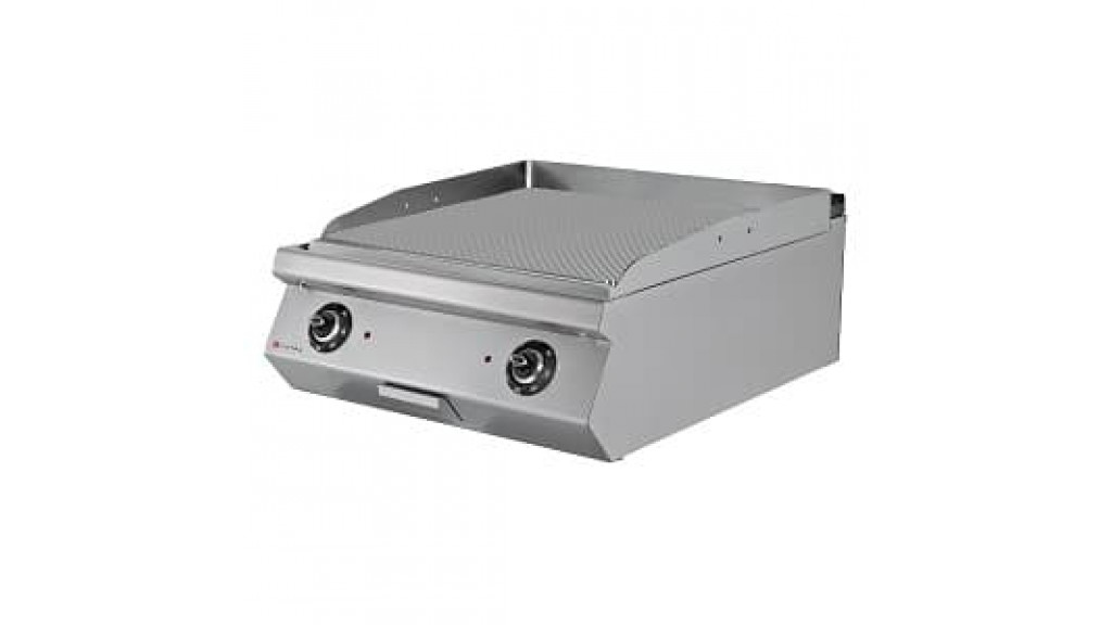 800 × 760 × 380 мм; 380 В; 8,4 кВт; 96 кг; настольная; две зоны нагрева с независимой регулировкой; рифлёная чугунная поверхность; размер поверхности 789 × 495 мм; термостат: 50…300 °C; ёмкость для сбора жира; борт для защиты от брызг.