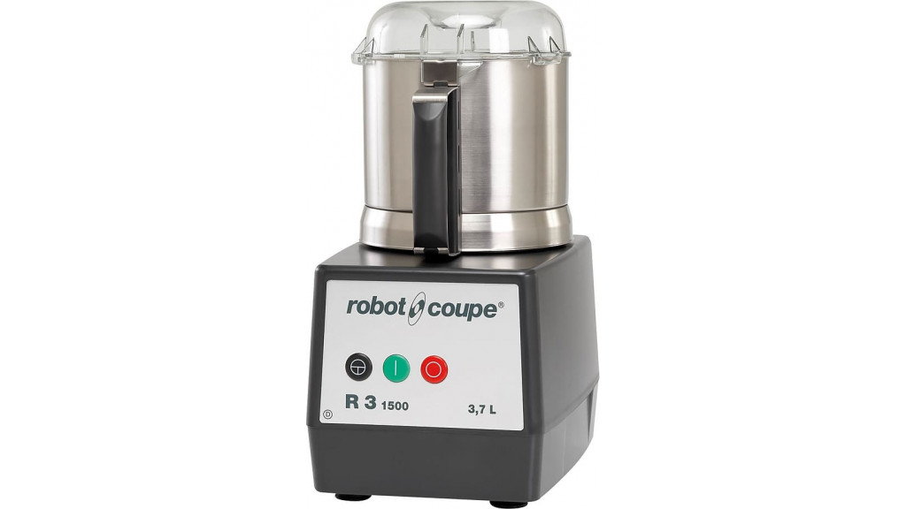 Настольный куттер, производства Robot Coupe (Франция) модель R3-1500, позволяет дробить (орехи, сухари, шоколад и даже замешивать тесто как на пельмени), рубить (мясо) и измельчать продукты ( лук, курага, чернослив, крабовые палочки, кальмары, варёное мясо, сыр, варёные яйца и др.).