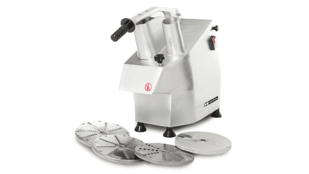 От 100 до 300 кг/ч; 5 дисков (ломтики 2, 4 мм, терка 3, 4, 7 мм); корпус и бункер из алюминия; днище из нерж. стали; бункер открывается вверх; пластмассовые ножки; 220 В; 0,55 кВт; 600 × 240 × 590 мм; 21,4 кг.