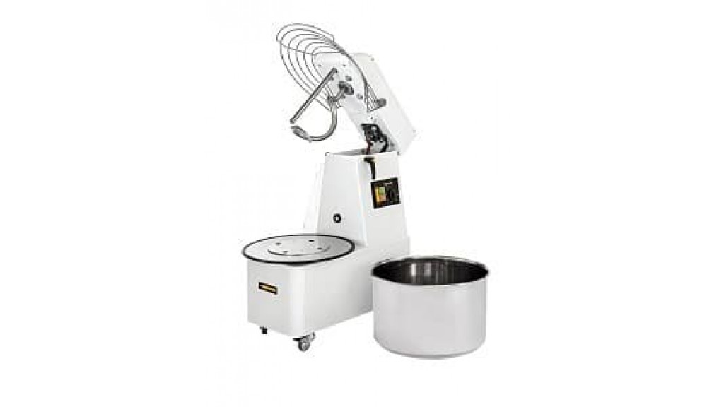 Не для крутого теста; объём дежи: 22 л; максимальный замес теста: 17 кг; минимальный: 2,5 кг; одна скорость; спиральный; съёмная дежа; подъемная траверса; таймер; рассекатель теста; колёса; производительность: 56 кг/ч; 220 В; 0,75 кВт; 385 × 670 × 725 мм; 79 кг.