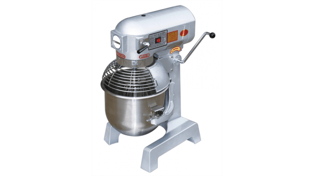 513 × 405 × 762 мм; 220 В; 1,1 кВт; 76 кг; три скорости; съёмная дежа на 20 л; крюк; плоский битер; проволочный венчик; макс. масса замешивания 3 кг
