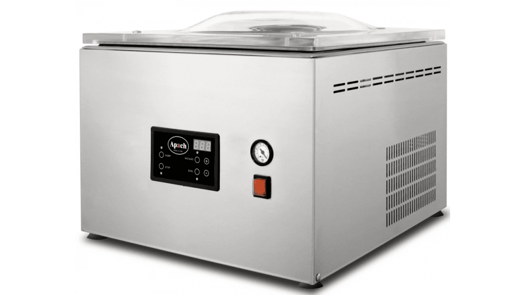 Вакуумный упаковщик Apach AVM420 используется на предприятиях общественного питания и торговли для упаковки продуктов. Модель оснащена модулем газонаполнения и электронной панелью управления с дисплеем. Корпус и камера выполнены из нержавеющей стали.