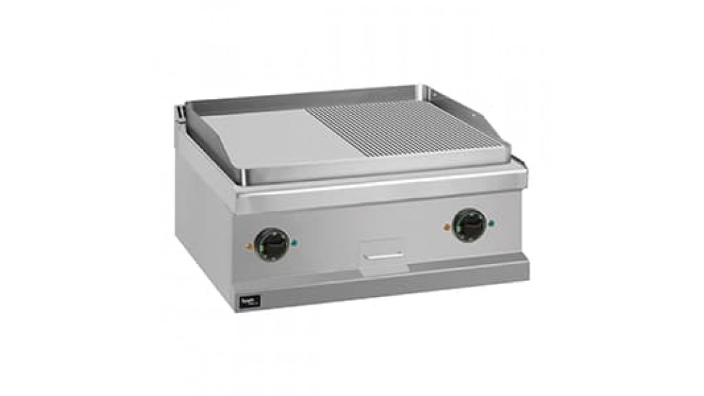 700 × 700 × 250 мм; 380 В; 8 кВт; 1/2 гладкая + 1/2 рифленая, настольная; материал рабочей поверхности - конструкционная сталь