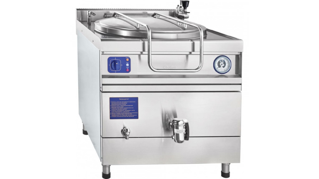 841 × 1015 × 1030 мм; Котел пищеварочный электрический КПЭМ-100/9Т, 900 серия; 100 л; +100 °С; сливной кран, пароводяная рубашка, цельнотянутый, 18,1 кВт; 400 В; 11000009838
