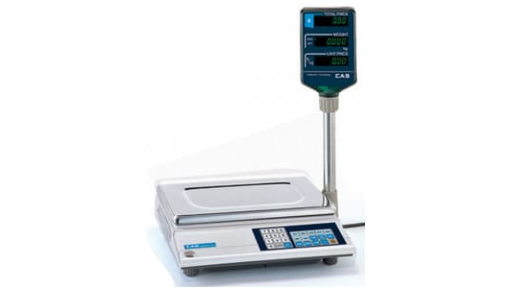 Товарные весы с увеличенной нагрузочной платформой, производства фирмы CAS (Южная Корея) модель AP-1 15M BT, предназначены для определения стоимости товара по его весу и цене. Данная модель относится к весам среднего класса точности. Предел взвешивания составляет 15 кг, цена поверочного деления и дискретность отсчета - 5 г. Максимальная масса тары 9,995 кг.