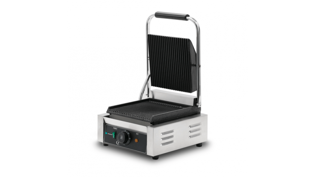 Одна зона нагрева; верхняя и нижняя поверхности рифлёные, чугунные; верх — 215 × 215 мм мм; низ — 218 × 230 мм; темп. режим: 50–300 °C; 220 В; 1,8 кВт; 310 × 370 × 210 мм; 14,2 кг.