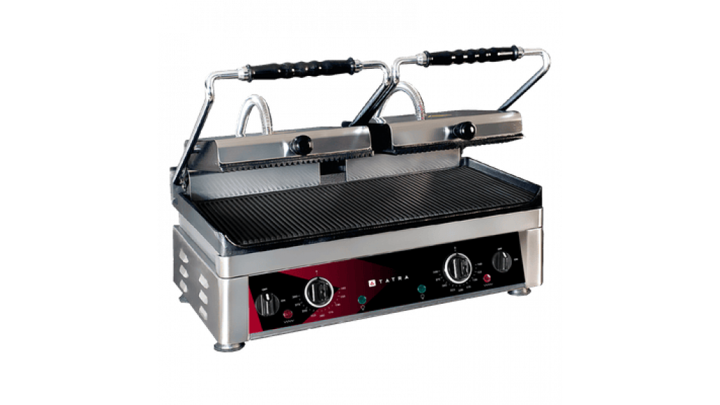 Контактный гриль Tatra TСG 5224 R R R+R предназначен для использования на предприятиях общественного питания и торговли для разогрева блюд из мяса, птицы и овощей, а также приготовления горячих бутербродов и сэндвичей.