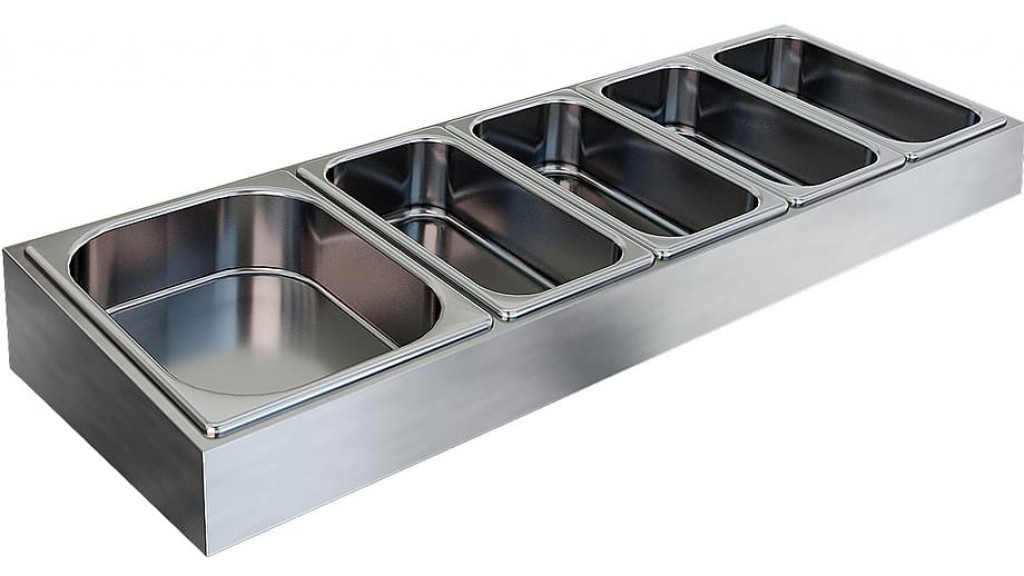 Подставка под гастроемкости Kayman RIGA ПГЗО-1000/351 предназначена для хранения и удобного размещения гастроемкостей, а также быстрого доступа к ингредиентам, связанными с изготовлением пиццы, шаурмы, хот догов и прочего ассортимента на предприятиях общественного питания. Конструкция собрана за заклепках из из оцинкованного уголка 1,5 мм. В комплекте гастроемкости GN 1/3 - 4 шт и GN 1/2 - 1 шт.