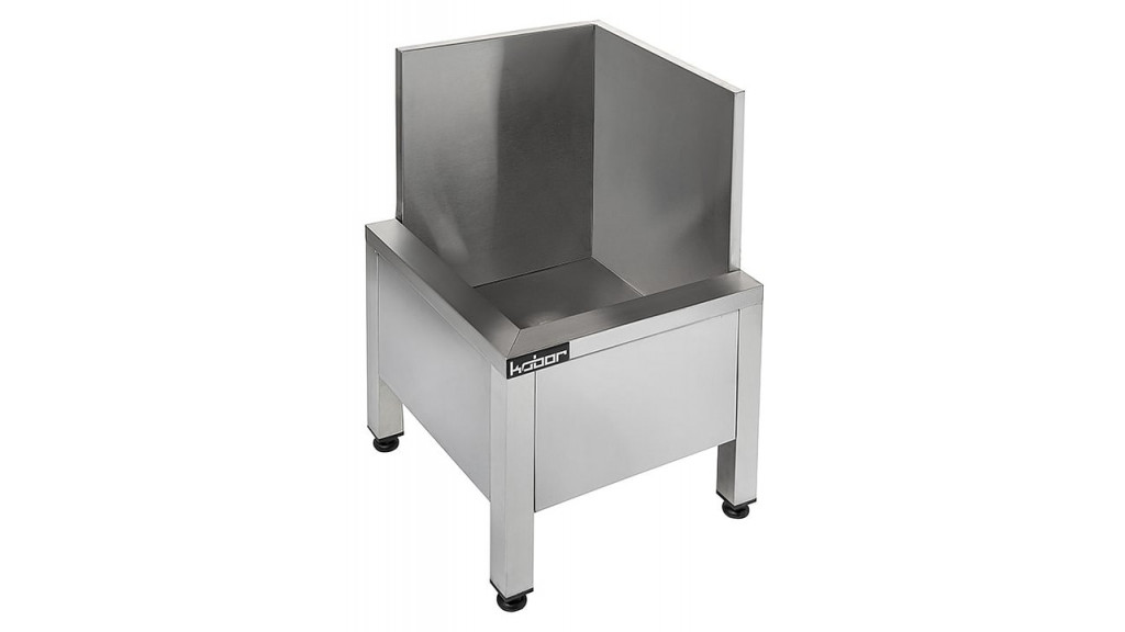 Ванна моповая; размеры ёмкости: 430 × 430 × 150 мм; ёмкость из нерж. стали AISI 430 каркас из нерж. трубы 40 × 40, фартук и борт с 2 сторон; в комплекте сифон; габариты: 500 × 500 × 400 (700 с бортом).