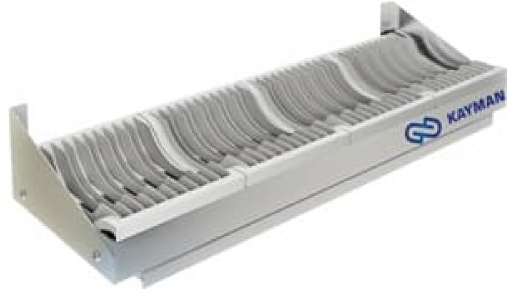 Полка настенная разборная из нержавеющей стали AISI 430, 1 уровень - кассета пластмассовая (на 50 тарелок), поддон из нержавеющей стали AISI 304. Размещают над моечной ванной в моечном отделении, либо над производственным столом в кухонных цехах. Возможно размещение полок одна над другой. Полка состоит из каркаса, кассет для тарелок и поддона. Кассета представляет собой решётку с ячейками, в которые помещаются тарелки. Поддон предназначен для сбора жидкости, поступающей с мокрой посуды, также изготовлен из пищевой нержавеющей стали марки AISI 304. Рекомендуем крепить полку к влагоустойчивым поверхностям.