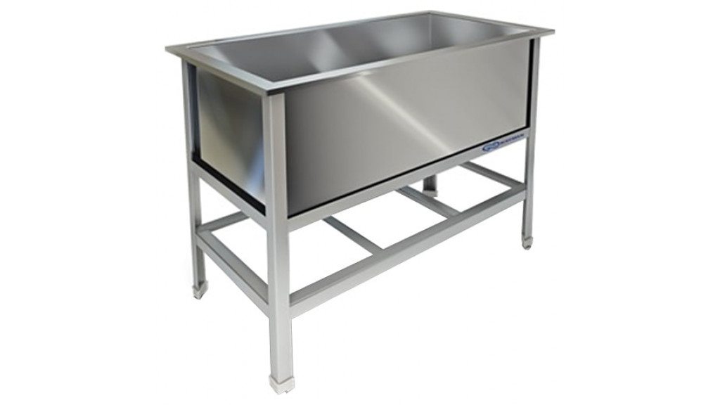 Каркас выполнен из нержавеющего уголка AISI 430 толщиной 1,5 мм, емкость - из нержавеющей стали AISI 304, толщина металла 0,8 мм.