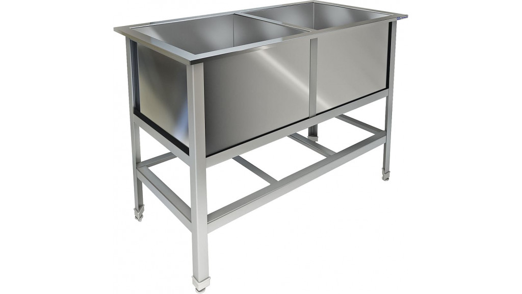 Каркас разборный; уголок из нержавеющей стали AISI 430; ёмкости из нержавеющей стали AISI 304; 1200 × 600 × 850 мм; 30 кг.