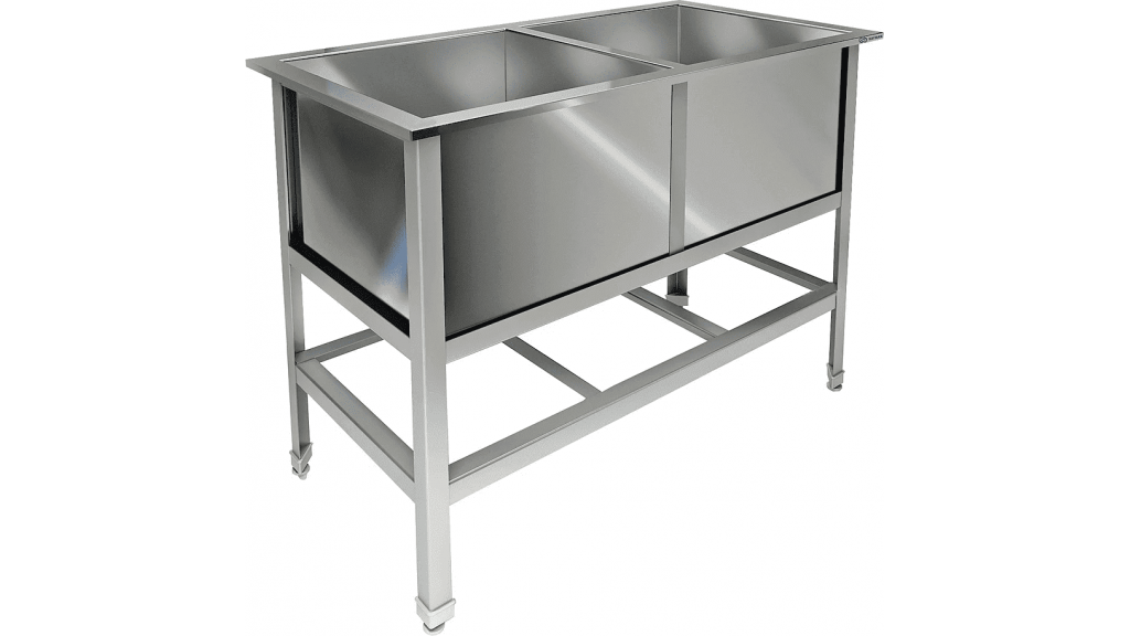 Каркас изготовлен из оцинкованного уголка, а ёмкость — из нержавеющей стали AISI 304 толщиной 0,8 мм.