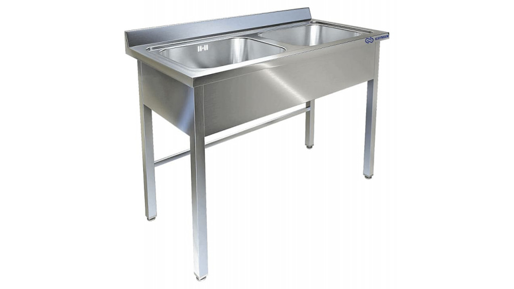 Стальная цельнотянутая ванна AISI 304; 2 емкости: 600 × 500 × 300 мм; каркас сварной, труба 40 × 40 из стали AISI 430, толщина 1,2 мм; рабочая поверхность из нержавеющей стали AISI 304, толщиной 1 мм; плоский борт плоский 70 мм; 1400 × 700 × 850 мм.