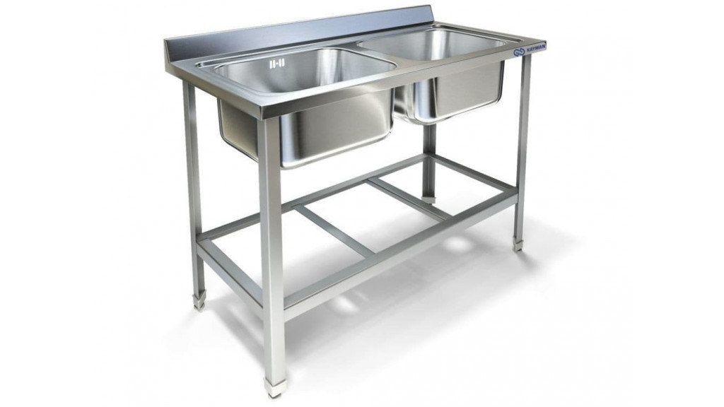 Стальная цельнотянутая ванна AISI 304; каркас уголок из нержавеющей стали AISI 430 толщиной 1,5 мм; рабочая поверхность из нержавеющей стали AISI 304, толщиной 1 мм; плоский борт 70 мм; обвязка; 1200 × 600 × 850 мм.