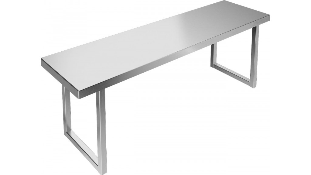 1200 × 400 × 400 Полка настольная для столов со столешницей ЛДСП разборная из нержавеющей стали марки AISI 430 толщиной 0,8 мм; с усилителем, 1 ярус. Боковины (стойки) из трубы 20 × 20 нержавеющей стали марки AISI 430 толщиной 1,2мм. Крепление к столу болтовое ч