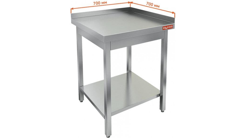700 × 700 × 850; НСО-7/7ББП стол произ. с двумя бортами и полкой,