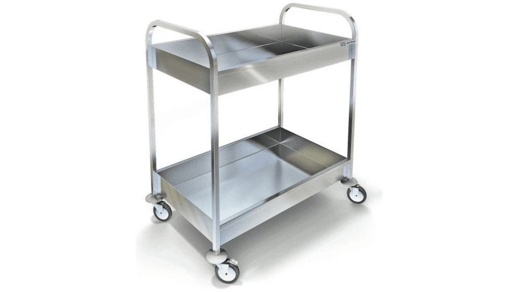 Тележка сервировочная Kayman ТСП-11/2 предназначена для доставки готовых блюд, сбора посуды со столов на предприятиях общественного питания. Модель оснащена поворотными колесами с тормозом. Каркас сварной из трубы 20 х 20 мм нержавеющая сталь AISI 304 толщиной 1,2 мм, полка из нержавеющей стали AISI 304 толщиной 0,8 мм.