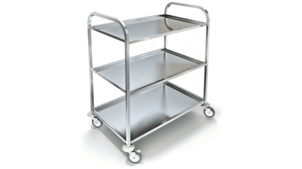 Тележка сервировочная Kayman ТС-11/3 предназначена для доставки готовых блюд, сбора посуды со столов на предприятиях общественного питания. Модель оснащена поворотными колесами с тормозом. Разборный каркас изготовлен из нержавеющей трубы AISI 304 20 × 20 мм толщиной 1,2 мм, полки - из нержавеющей стали AISI 304 толщиной 0,8 мм.