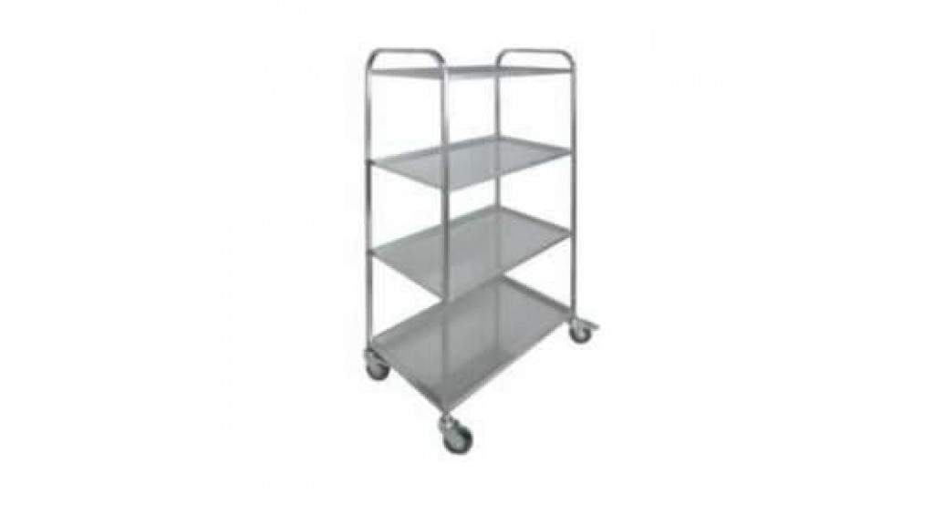 Тележка представляет собой конструкцию, состоящую из двух элементов: стойки и полки. За счет специальной конструкции, облегчается транспортировка и перемещение тележки при ограниченном пространстве, а также позволит провезти тележку в любую стандартную дверь. Данная модель оснащена четырьмя уровнями полок. Также данная модель оснащена обвязкой, которая позволяет минимизировать раскачивание и обеспечить более стабильную фиксацию при работе с тележкой.