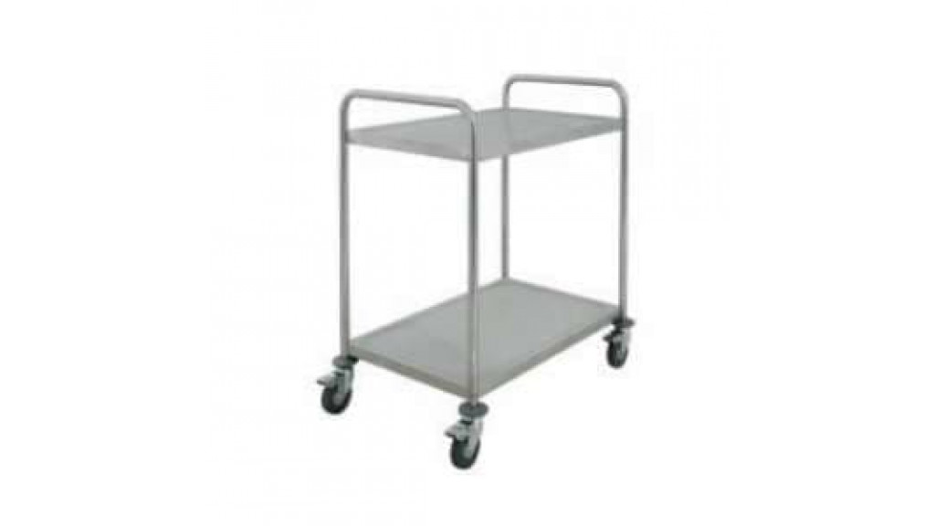 Тележка представляет собой конструкцию, состоящую из двух элементов: стойки и полки. За счет специальной конструкции, облегчается транспортировка и перемещение тележки при ограниченном пространстве, а также позволит провезти тележку в любую стандартную дверь. Данная модель оснащена двумя уровнями полок. Также данная модель оснащена обвязкой, которая позволяет минимизировать раскачивание и обеспечить более стабильную фиксацию при работе с тележкой.