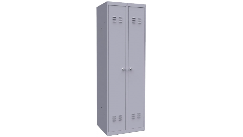 600 × 500 × 1750 мм, корпус из крашенного металла, секций две, крючки, замок