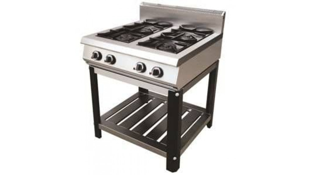 800 × 800 × 1050 мм; 4 профессиональные горелки класса Heavy Duty, газовая мощность: 27 kW, газ/контроль, 3 горелки по 6.5 кВт; подставка полностью разборная c 1 нейтральной полкой, плита и подставка из нержавеющей стали; г.нетто 800 × 800 × 1050 мм, 80 кг.