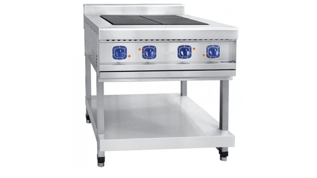 840 × 900 × 940 мм; плита электрическая ЭПК-48П, 4 конфорки, КЭТ-0,09, без духовки, на подставке, полностью из нержавеющей стали.
