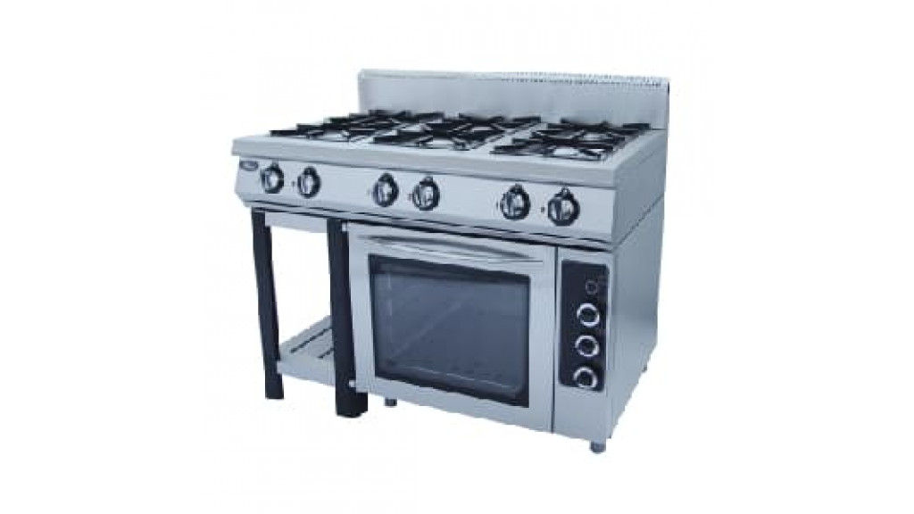 1180 × 800 × 1050 мм; в дополнение к плите 50004 - духовка 4хGN 2/1 из нержавеющей стали; расстояние между противнями 90 мм; с таймером, подсветкой; дверь духовки со стеклом(закаленным): сверху в духовке ТЭН 1.5 kW, снизу ТЭН 3kW, управление температурой в духовке с п