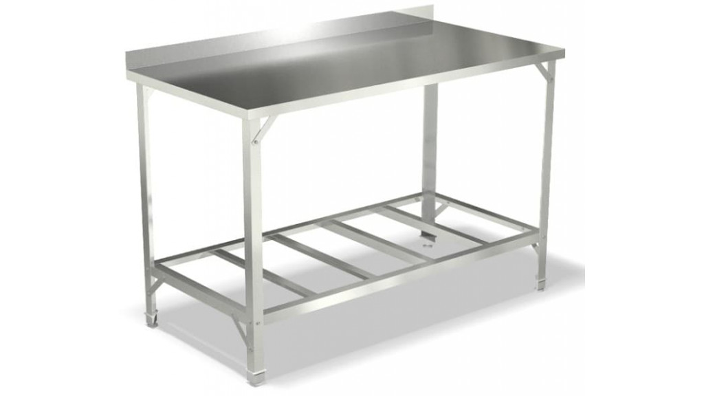 1200 × 600 × 850, стол пристенный (с бортом), полка решётчатая (подложка столешницы - ДСП), каркас из оцинкованной стали