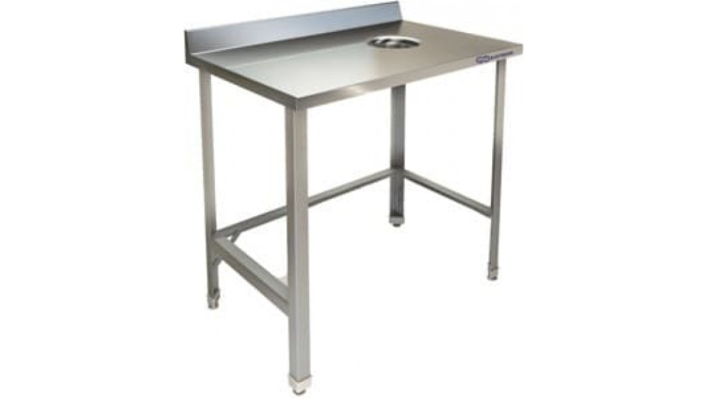 600 × 600 × 850, столешница AISI430,каркас: уголок из оцинкованной стали;Обвязка. Отверстие 180 мм; плоский борт, V, м3