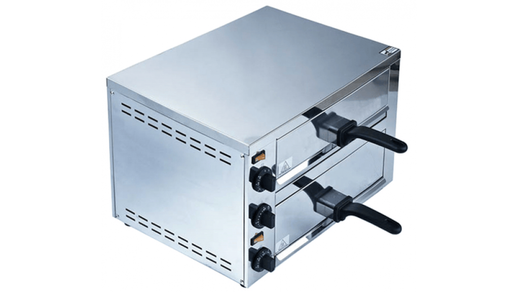 485 × 380 × 331 мм; 2,26 кВт; 220 В; 15 кг; температура: 60…300 °C; две камеры; таймер со звуковым сигналом; два поддона для крошек; максимальный размер пиццы: 33 см; корпус из нержавеющей стали; съёмные ручки; подстраиваемые ножки