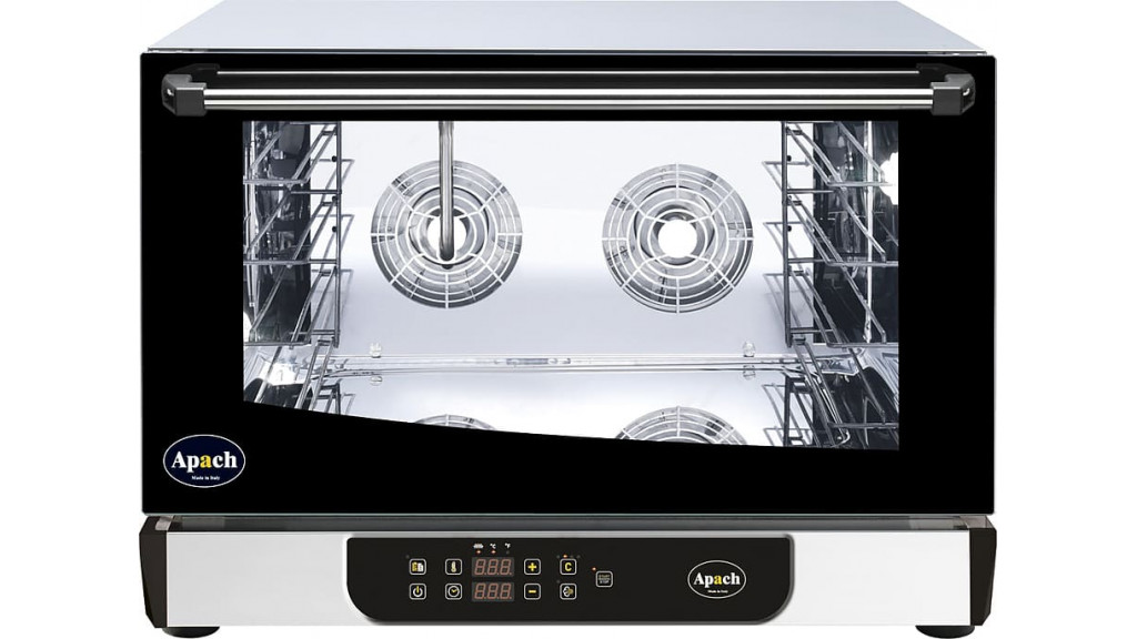 Печь конвекционная Apach AD46D предназначена для выпекания различных кондитерских и хлебобулочных изделий, приготовления мяса и рыбы, а также для разогрева готовых блюд. Модель оснащена электронной панелью управления и галогеновой подсветкой.