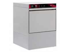 585 × 618 × 815 мм; 220/380 В; 5,1 кВт; 60 кассет/час; циклы: 60, 90, 120, 180 сек; подключение к холодной и горячей воде; кассета 500 × 500 мм; дозаторы моющего и ополаскивающего средств; помпа слива; высота загрузочного окна: 290 мм; функция «Thermostop».