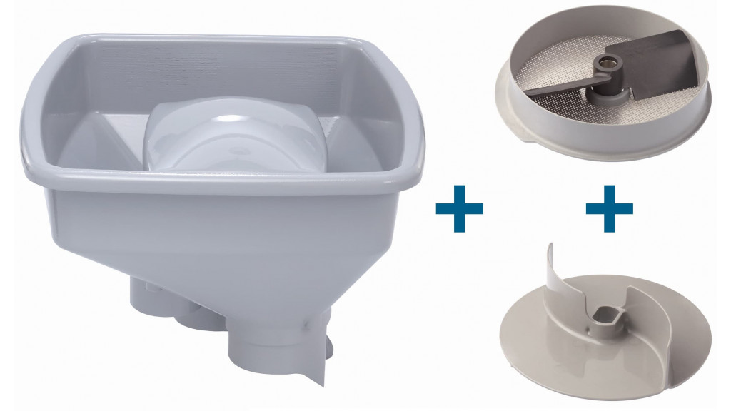 диск-протирка 6 мм; лопасть для протирания, диск-сбрасыватель и воронка для загрузки (воронка только для CL50E, CL50 Ultra и R502),. Предназначен для использования в R502E. состоит из диска-протирки с отверстиями 6 мм для получения однородного пюре, лопаст