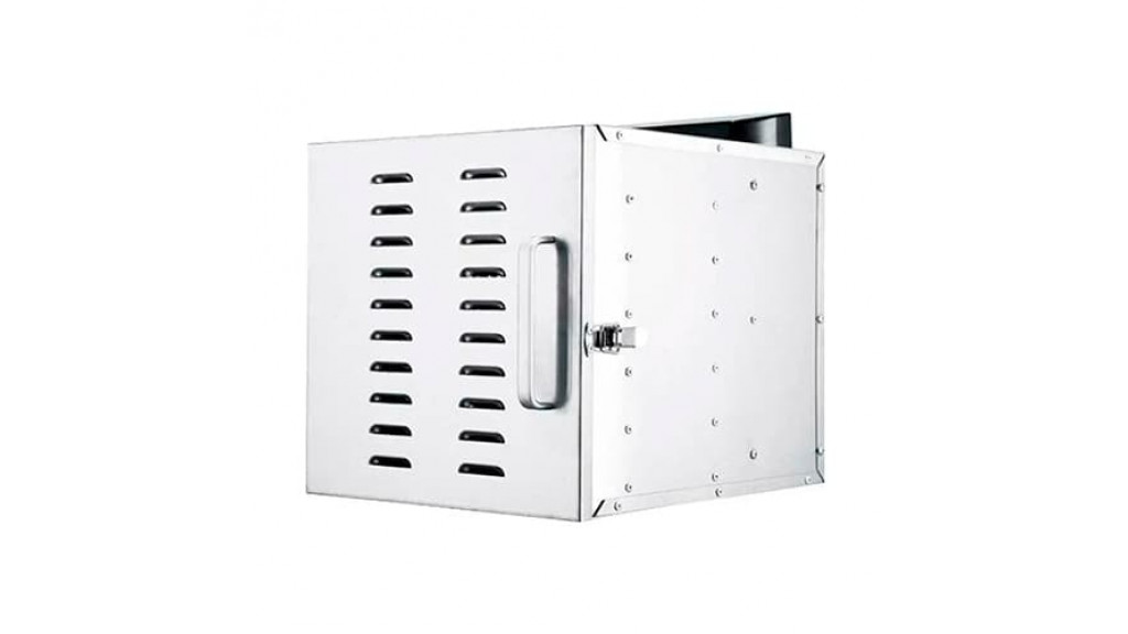 300 × 360 × 380 мм; 220 В; 0,36 кВт; 5,6 кг; электронная панель управления; 6 уровней (27 мм между уровнями); размер решеток 285 × 200; температурный режим: 30 … 80 °C; таймер до 24 ч; уровень шума: 45 dB, корпус и решётки из нержавеющей стали.