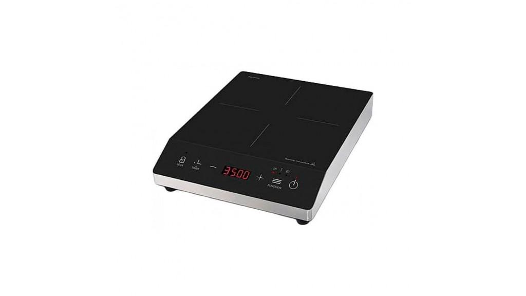 420 × 340 × 85 мм; 3,5 кВт; 220 В; 6,6 кг; сенсорная панель управления; LED дисплей; 10 уровней мощности нагрева: 500 … 3500 Вт; температурный режим: 60 … 240 °С; электронный таймер на 3 часа; защита от перегрева; корпус из нержавеющей стали.