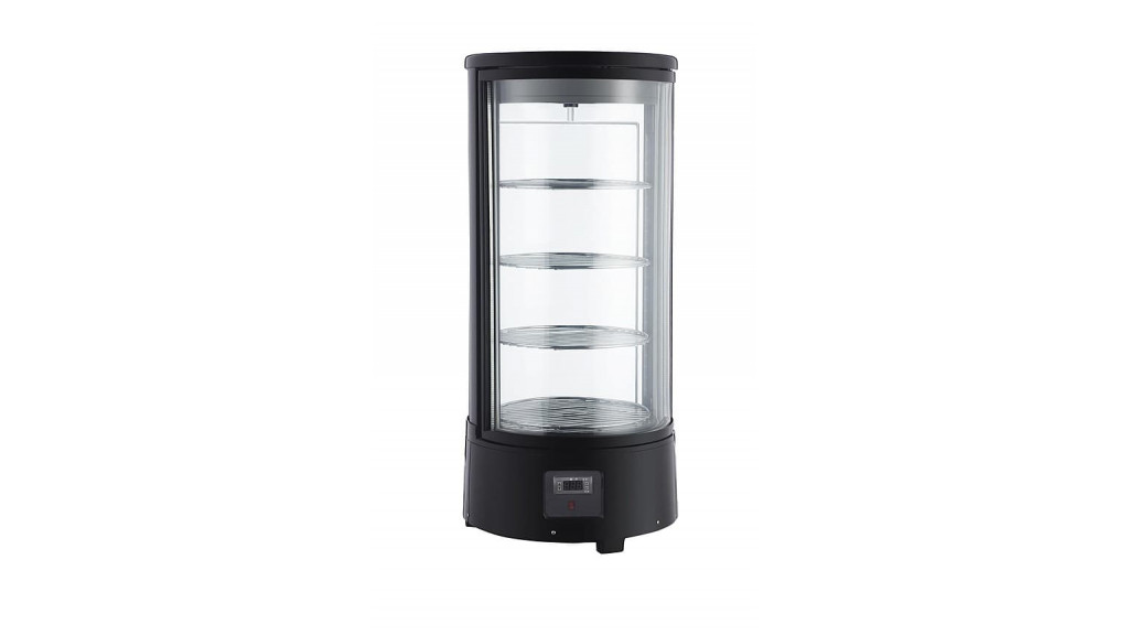 Витрина оснащена тремя круглыми решетчатыми полками для удобного размещения продуктов.
