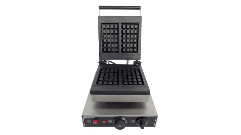382 × 305 × 233 мм; 1,8 кВт; 220 В; материал: чугун с антипригарным покрытием; форма вафли: стандартная бельгийская; размер вафли: 160 × 100 мм.
