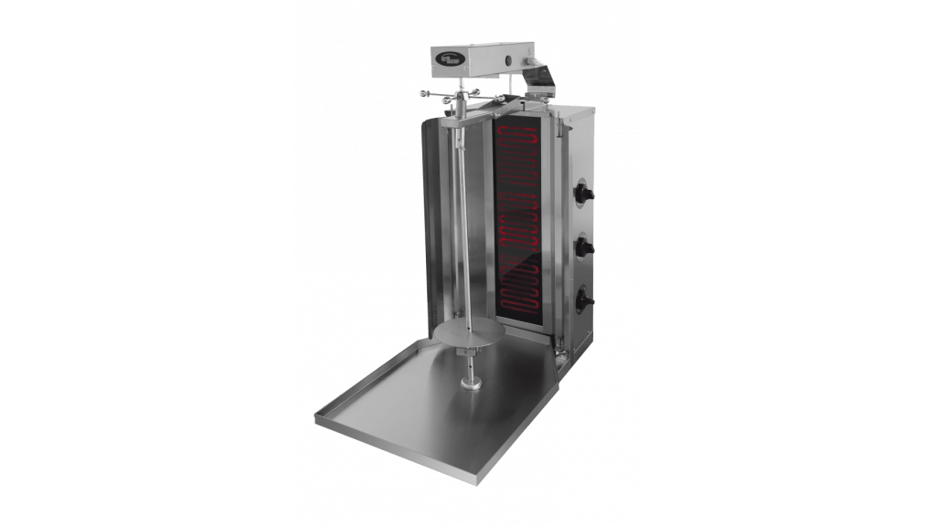 Гриль для шаурмы Grill Master Ф3ШМС/1 (с мотором) 21212 предназначен для запекания специально подготовленного мяса, используемого для приготовления шаурмы, на предприятиях общественного питания и торговли. Модель оснащена 3 спиральными нагревателями с регуляторами мощности. Корпус выполнен из нержавеющей стали.