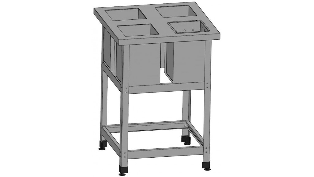Сварные ёмкости из нержавеющей стали марки AISI 430, толщиной в 0,8 мм устанавливаются на разборный каркас с обвязкой. Каркас изготавливается из нержавеющего уголка (AISI 430), толщиной в 1,5 мм. Борт отсутствует.