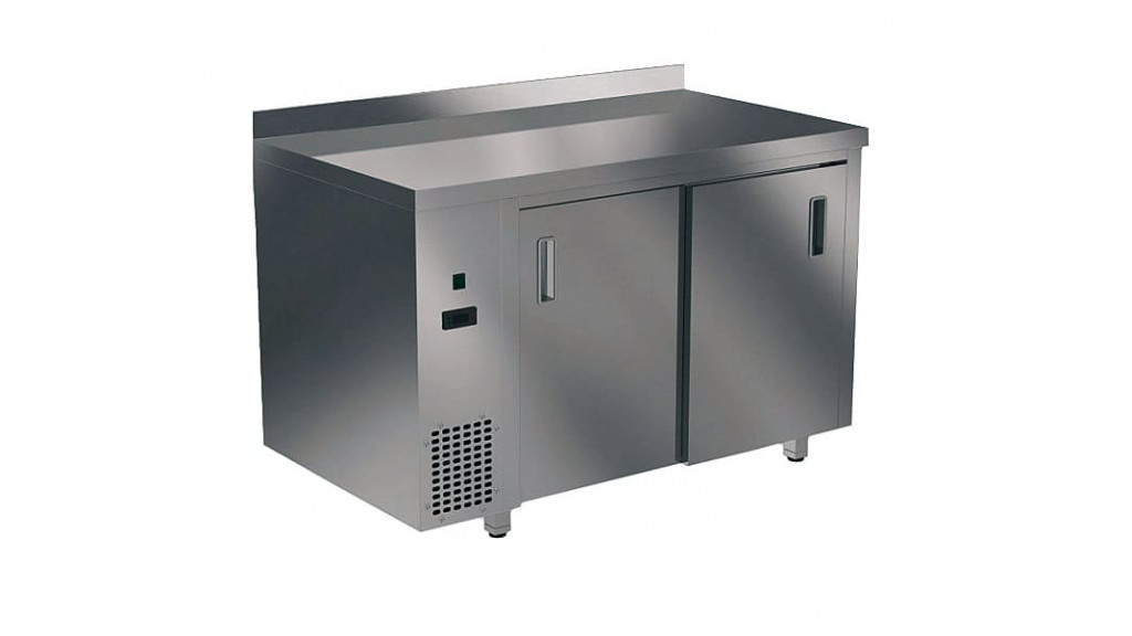 1500 × 700 × 850 мм; Тепловой стол с бортом высотой 70 мм; столешница из нержавеющей стали марки AISI 430 толщиной 0,8 мм; ЛДСП толщиной 32 мм; корпус из нержавеющей стали марки AISI 430 толщиной 0,8 мм; две двери-купе, полка из нержавеющей стали марки AISI 430.