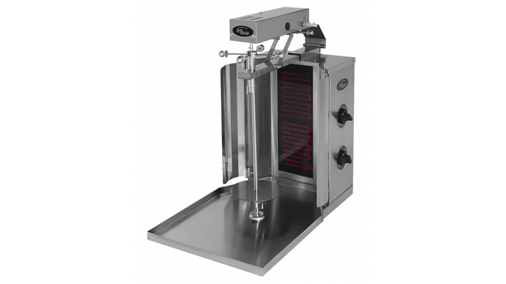 Аппарат для шаурмы «Гриль мастер» Ф2ШМС 21208 предназначен для приготовления мясной начинки на шаурму. Модель оснащена 2 спиральными нагревательными элементами и поддоном для мяса. Оборудование выполнено из пищевой нержавеющей стали.